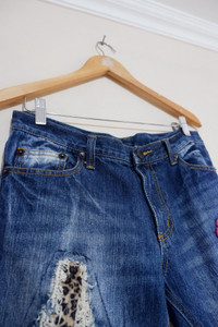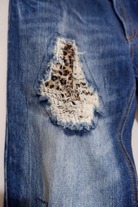 Vintage Distressed Patchwork Leopard Denim