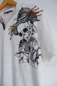 Japanese Brand - Vintage Skull Geisha Embroidered Flames T shirt