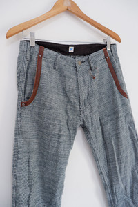 Vintage Pure Blue Japan Leather Accent Pocket Long Pants