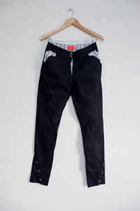 Please note the details before buying Vivienne Westwood Button Leg Pants Size on tag 28 Measurements on flat Waist 14 inches Rise 10 inches Knee 7.3 inches Open leg 5.5 inches Length 40 inches materials : 100% cotton condition : Good Condition ----------------------------------------------- Offer Are Welcome ---------------------------------------------- Contact us for more questions DELIVERY: Using DHL EXPRESS Please leave your phone number during purchases, Phone number Required for delivered prosses REFUNDS: No returns, exchanges or refunds THANKS