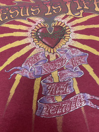 Brand : JESUS Size on tag : XL Actual measurements in "inches : Do not rely on tag size as pre-worn items may have been stretched or shrunk & vintage sizes do not directly translate the modern sizes.The best way to ensure a correct fit is to compare our measurements with the measurements of a similar item that you know fits you well.Please enlarge the photos for clearer image. Condition : Please see detailed pics to judge the condition yourself. If you have any questions please let me know. Payment method : Paypal. NO TRADES, NO RETURN! ALL SALES ARE FINAL! $$$ OFFER ME YOUR BEST PRICE! $$$ Shipping : item will be ship in 3-4 working days after purchase. Dear valued customers : Please dont worry about custom tax fees during shipping because I always declared all items as a gift and wrote the value lower than original price usually just $50 only. Thank you very much for visiting us.