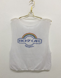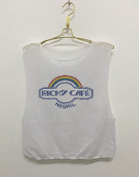 Brand : RICK’S CAFE Size on tag : OS Actual measurements in "inches : Chest : 19” Length : 21” Do not rely on tag size as pre-worn items may have been stretched or shrunk & vintage sizes do not directly translate the modern sizes.The best way to ensure a correct fit is to compare our measurements with the measurements of a similar item that you know fits you well.Please enlarge the photos for clearer image. Condition : Please see detailed pics to judge the condition yourself. If you have any questions please let me know. Payment method : Paypal. NO TRADES, NO RETURN! ALL SALES ARE FINAL! $$$ OFFER ME YOUR BEST PRICE! $$$ Shipping : item will be ship in 3-4 working days after purchase. Dear valued customers : Please dont worry about custom tax fees during shipping because I always declared all items as a gift and wrote the value lower than original price usually just $50 only. Thank you very much for visiting us.