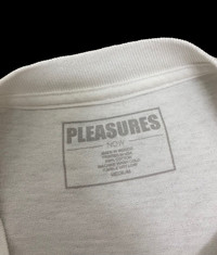 Brand : PLEASURES Size on tag : M Actual measurements in "inches : Do not rely on tag size as pre-worn items may have been stretched or shrunk & vintage sizes do not directly translate the modern sizes.The best way to ensure a correct fit is to compare our measurements with the measurements of a similar item that you know fits you well.Please enlarge the photos for clearer image. Condition : Please see detailed pics to judge the condition yourself. If you have any questions please let me know. Payment method : Paypal. NO TRADES, NO RETURN! ALL SALES ARE FINAL! $$$ OFFER ME YOUR BEST PRICE! $$$ Shipping : item will be ship in 3-4 working days after purchase. Dear valued customers : Please dont worry about custom tax fees during shipping because I always declared all items as a gift and wrote the value lower than original price usually just $50 only. Thank you very much for visiting us.