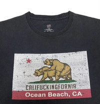 Brand : CALIFUCKINGFORNIA Size on tag : L Actual measurements in "inches : Do not rely on tag size as pre-worn items may have been stretched or shrunk & vintage sizes do not directly translate the modern sizes.The best way to ensure a correct fit is to compare our measurements with the measurements of a similar item that you know fits you well.Please enlarge the photos for clearer image. Condition : Please see detailed pics to judge the condition yourself. If you have any questions please let me know. Payment method : Paypal. NO TRADES, NO RETURN! ALL SALES ARE FINAL! $$$ OFFER ME YOUR BEST PRICE! $$$ Shipping : item will be ship in 3-4 working days after purchase. Dear valued customers : Please dont worry about custom tax fees during shipping because I always declared all items as a gift and wrote the value lower than original price usually just $50 only. Thank you very much for visiting us.
