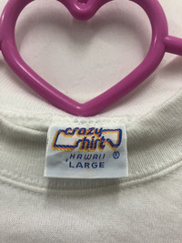 Crazy Shirt Hawaii Made in USA 50% cotton 50% polyester Size on the tag: Large (Kids) Good vintage condition Thank you and have a nice day!