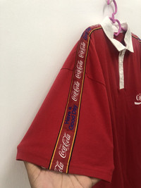 Rare COCA COLA Have A Good Day Spell Out Taped Polo Shirt