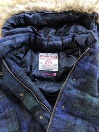 Rare Harris Tweed Hand Woven Fur Hooded Heavy Jacket
