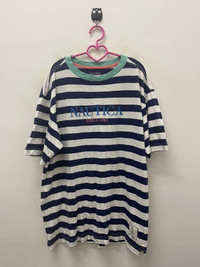 Rare NAUTICA Spell Out Embroidered Striped Tee