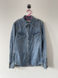 Rare Vintage Remi Relief Japan Paisley Pearl Snap Denim