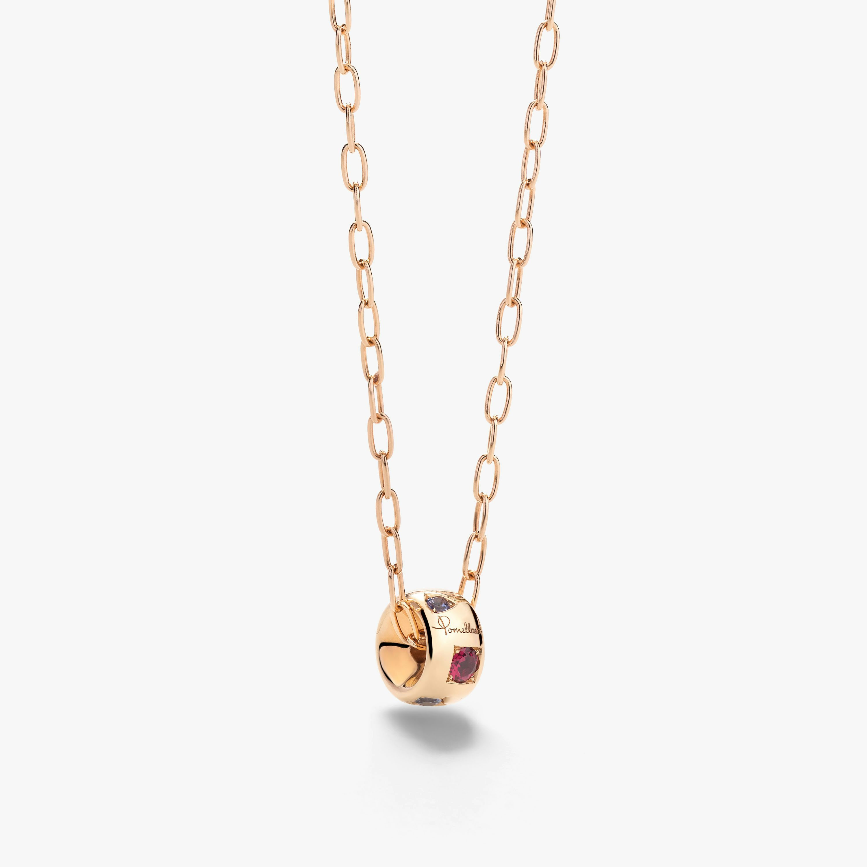 SKU: PCB9010_O7000_000VA Necklace With Pendant In 18K Rose Gold With 1 Orange Sapphire Treated (≈0.1 Ct), 1 Blue Sapphire (≈0.1 Ct), 1 Pink Sapphire (≈0.1 Ct), 1 Tsavorite (≈0.1 Ct), 1 Red Spinel (≈0.1 Ct) And 1 Tanzanite (≈0.1 Ct). Joyful Iconica shines bright with star-shaped, triangular, oval and square-set gems in all the shades of the rainbow, one of the signature characteristics of the collection.