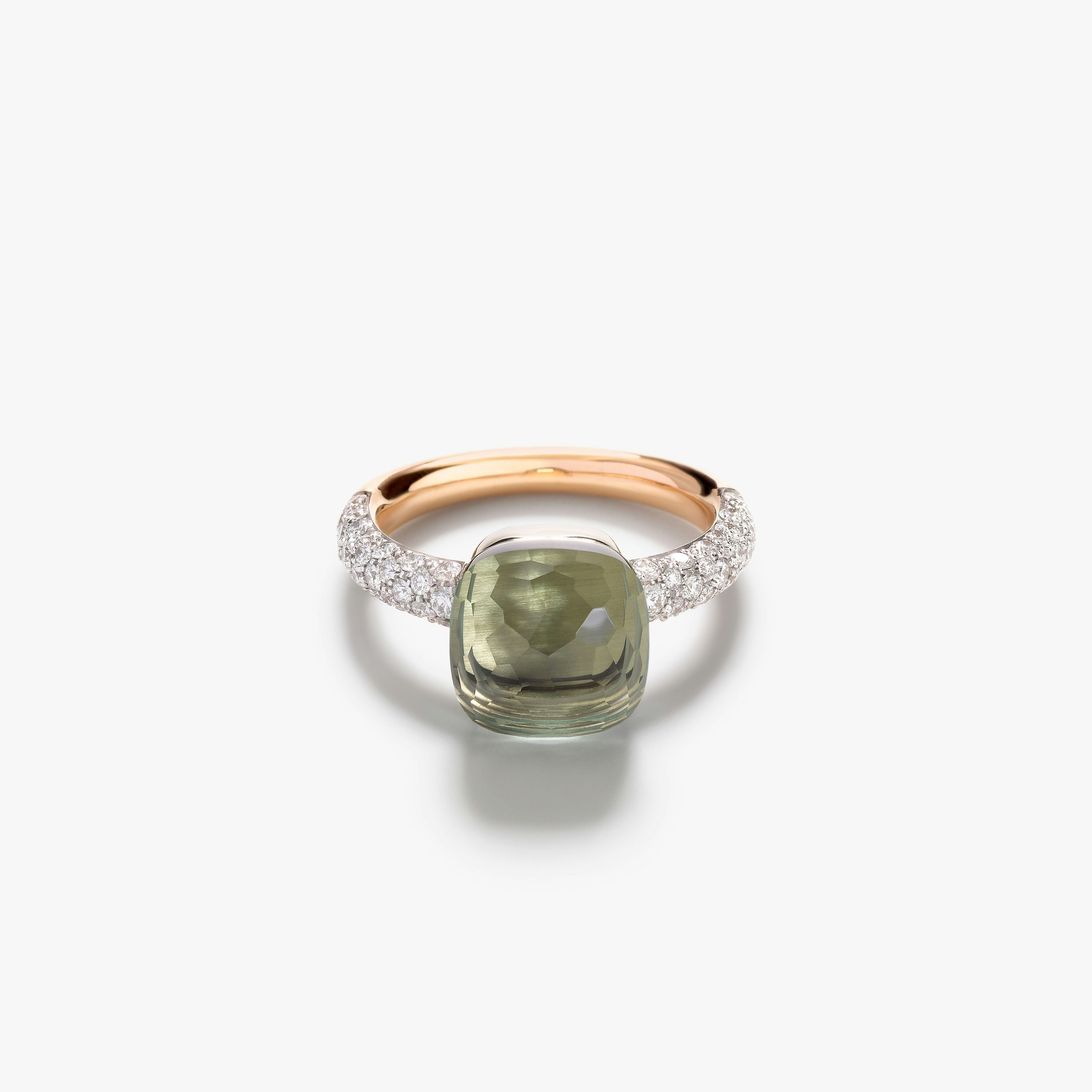 SKU: PAC0040_O6WHR_DB0PA Ring In 18K Rose And White Gold With 1 Prasiolite (≈7 Cts) And 58 White Diamonds (≈0.7 Ct) On 18K White Rhodium-Plated Rose Gold. Nudo 2021 jewels celebrate a woman’s uniqueness. As Pomellato’s most iconic design, Nudo pieces are immediately recognizable, with no-prong ‘naked’ gemstones in a rainbow of colors. Stackable and mix-and-matchable, a woman expresses her uniqueness with the choice of her Nudo jewels. The Nudo woman feels free to be herself: striking, strong, unconventional, and full of color.