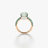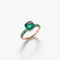 SKU: PAC3000_O6BKR_TZMPA Ring In 18K Rose And White Gold With 1 Prasiolite, 1 Malachite (≈4.9 Cts) And 32 Tsavorites (≈0.5 Ct) On 18K Black Rhodium-Plated Rose Gold. Nudo continues to be Pomellato’s signature design with its defining trait of vibrant colours. The new nudo Ring is immediately recognizable in a brand new doublet combinations: prasiolite and malachite with a tsavorite pave.