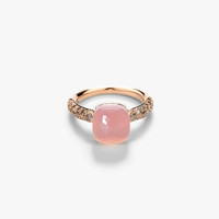 SKU: PAB7040_O6000_BRCQR Ring In 18K Rose And White Gold With 1 Rose Quartz, 1 Chalcedony (≈5 Cts) And 36 Brown Diamonds (≈0.5 Ct). The vibrant color combination of rose quartz and chalcedony celebrates a woman's uniqueness, as it sparkles with Milanese flair.