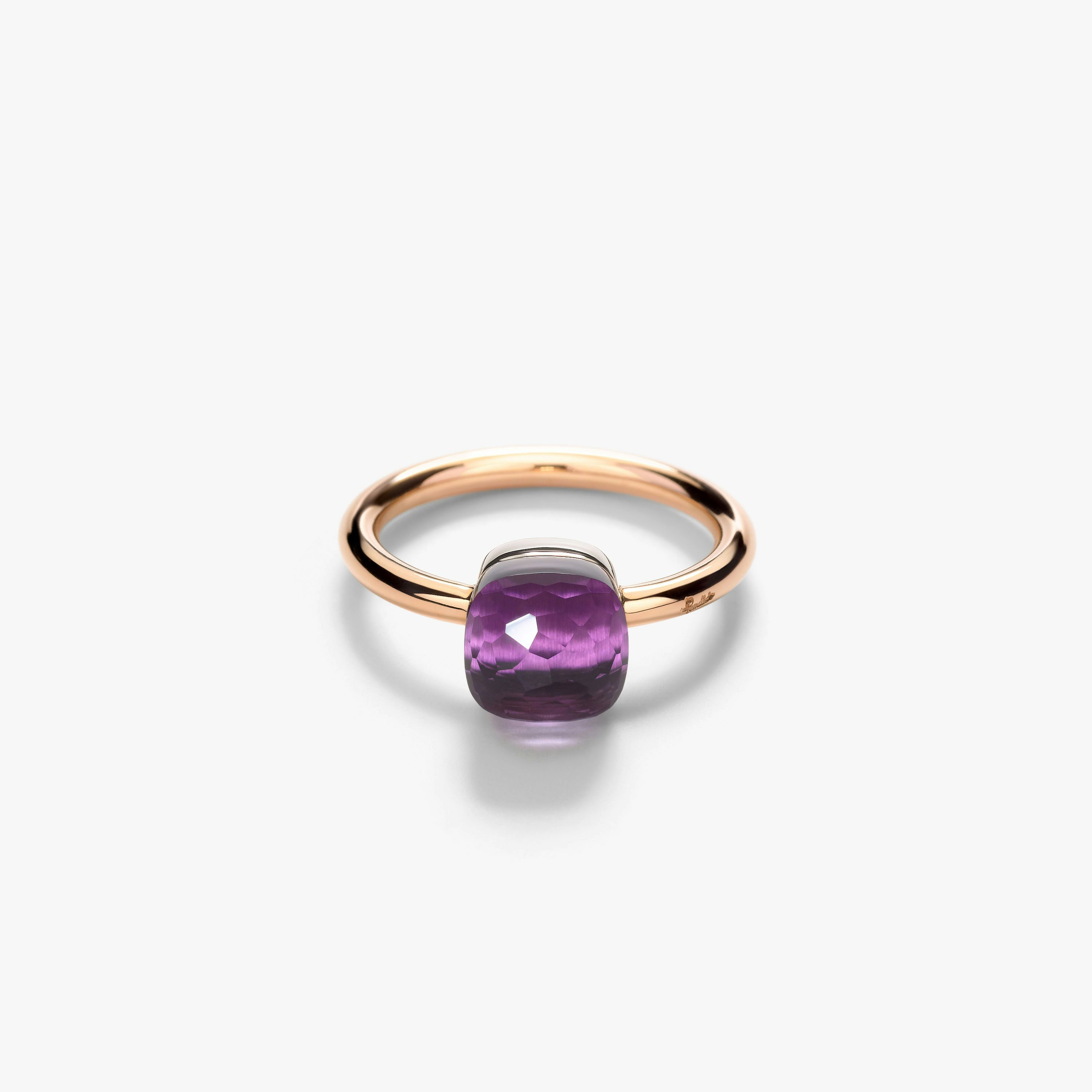 SKU: PAB4030_O6000_000OI Ring In 18K Rose And White Gold With 1 Amethyst (≈4.9 Cts). Nudo Petit, the smallest Nudo size, features a more subtle yet equally distinctive version of Pomellato's most iconic design. Its compact 'nude' stone is available in a variety of colors and stone sizes, ready to mix-and-match.