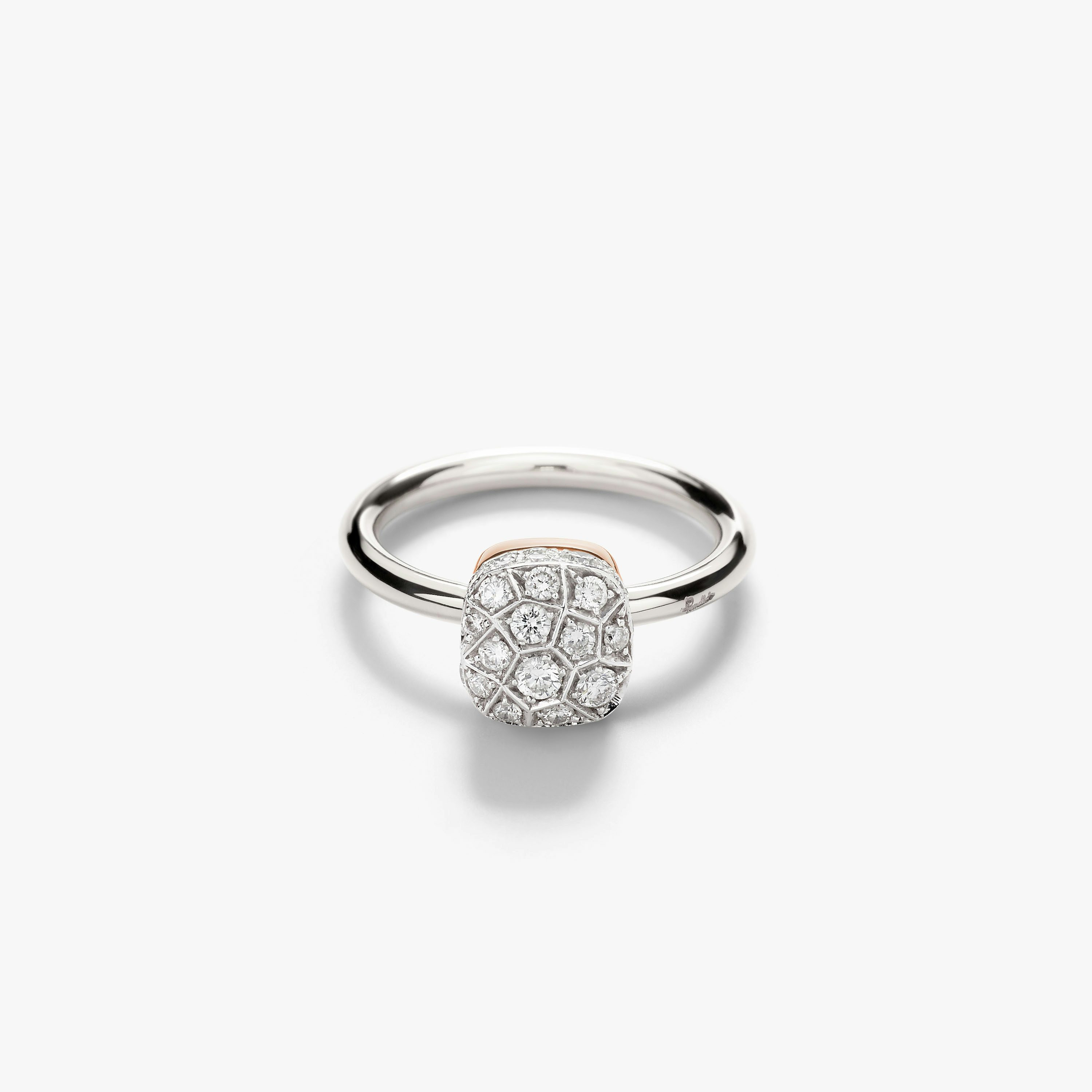 SKU: PAB5010_O6000_DB000 Ring In 18K Rhodium-Plated White And Rose Gold With 39 White Diamonds (≈0.8 Ct). Nudo Solitaire shimmers with precious pave carefully set by hand in the Pomellato atelier in Milan.