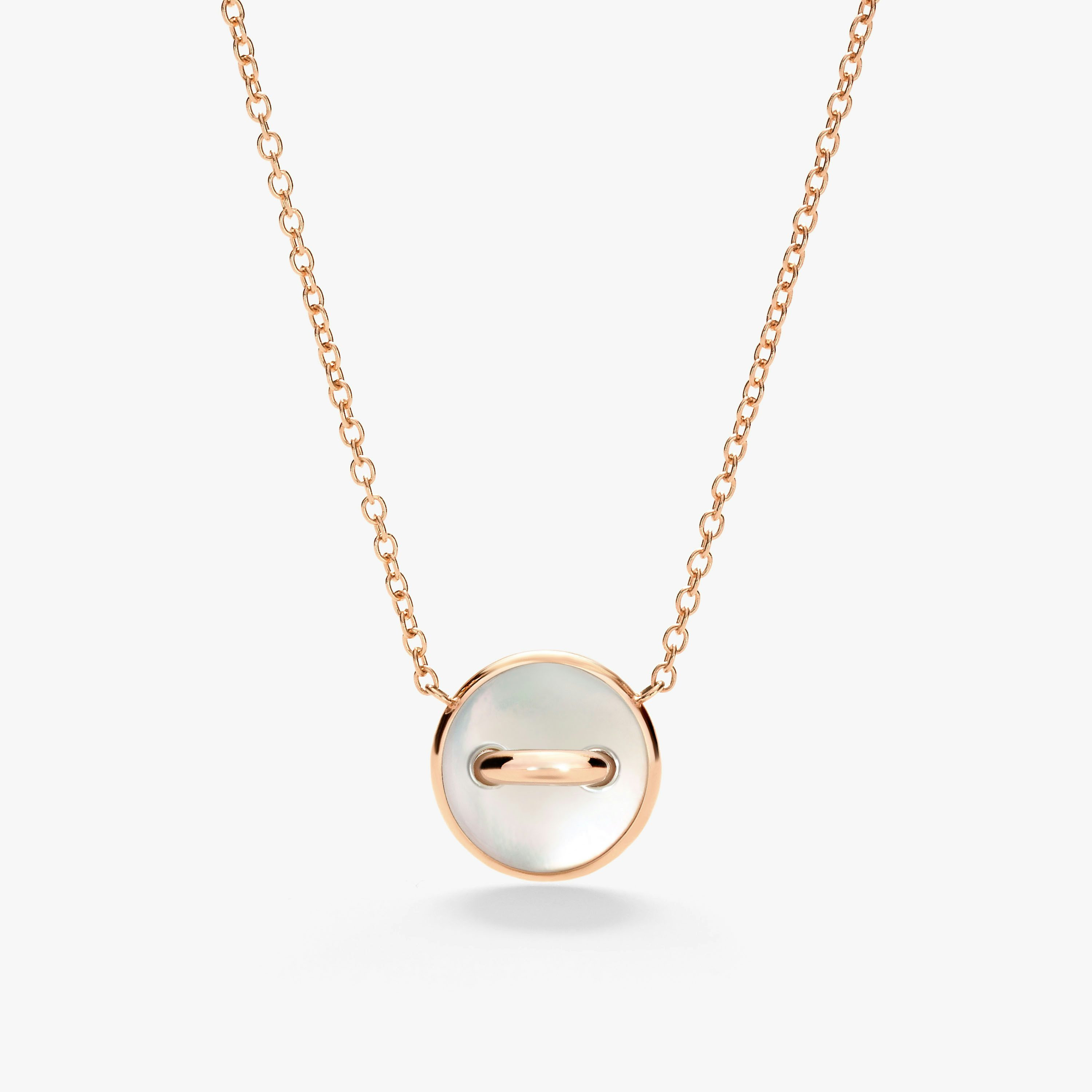 SKU: PCC4030_O7WHR_DB0ON Length: 38-40-42 cm Necklace With Pendant In 18K Rose Gold With 1 Onyx (≈1.5 Cts), 1 White Mother-Of-Pearl (≈1.6 Cts) And 14 White Diamonds (≈0.05 Ct) On 18K White Rhodium-Plated Rose Gold. Pomellato revisits its iconic ‘button’ design heritage with a new collection, reinterpreting an iconic gold necklace from 1974 in an unexpected and playful way. The new Pom Pom Dot collection flips with two-sided gem colors for a playful versatility. Drawing on the button’s historical significance, both as a functional accessory and an ornement, its soft round silhouette becomes a modern-day emblem of connection and protection. The latest addition features black onyx, known for its association with happiness and good fortune, paired with white mother-of-pearl on the reverse side. This dual-sided pendant, accented with white diamonds and set in rose gold, offers wearers the flexibility to switch between two sophisticated looks with a simple flip, adapting effortlessly to various styles and occasions.