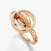 SKU: PAC5031_O7WHR_DB0TU Reversible Ring In 18K Rose Gold Front: 18K Rose Gold With 12 White Diamonds (≈0.06 Ct) On 18K White Rhodium-Plated Rose Gold Back: 1 Turquoise (≈0.9 Ct). The Pom Pom Dot collection reinterprets Pomellato's heritage, drawing inspiration from a 1974 button-inspired gold necklace. Each reversible creation features two distinct faces, transforming the historic button motif into an emblem of connection and protection. This contemporary design celebrates both function and symbolism through versatile, playful jewels. This new reversible ring is a masterpiece of craftsmanship showcasing a sophisticated rose gold surface adorned with a diamond-set thread on one side and a simple twist reveals pure turquoise surface with a rose gold thread on the other side. The turquoise has been specially selected for the absence of inclusions - a rare quality in natural turquoise. The combination of turquoise with rose gold and diamonds offers two distinct styles that reflect Pomellato's signature versatility and gem expertise.