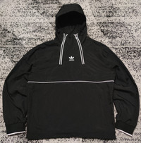 ADIDAS ORIGINALS Between-Season Jacket 'Rekive' in Black Design & ExtrasPlain colored Quilted hem/edge Hood with drawstring Round hem Label embroidery Supple feel Lightly lined Zip fastening