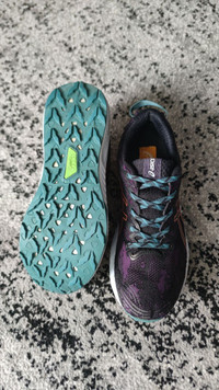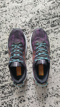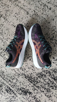 Without a box Insole length 24.5cm Don't forget to subscribe to our page so you don't miss out on new products. The Asics Fuji Lite 3 1012B294 Night Shade/Nova Orange 500 is the perfect shoe for active women who are looking for a running shoe that is not only stylish but also comfortable. Thanks to innovative technologies such as FlyteFoam and Asics Grip, these shoes provide incredible cushioning and traction on any surface. Whether you're running on hard asphalt or uneven terrain, these shoes adapt to your running style for maximum comfort and safety. The high quality material upper guarantees a perfect fit and breathability to prevent chafing and excessive sweating of the feet. This allows you to enjoy long workouts without any discomfort. The Asics Fuji Lite 3 1012B294 Night Shade/Nova Orange 500 is not only functional, but also has a fashionable design. The purple color gives them a unique character and sets you apart from other runners. In addition, the lace-up closure allows the shoe to fit perfectly to your foot for even more comfort and stability while running. Don't waste time looking for the perfect running shoe. The Asics Fuji Lite 3 1012B294 Night Shade/Nova Orange 500 is the perfect choice for all women who value not only quality but also style and comfort. Get one step closer to achieving your sporting goals and put on these sneakers now!