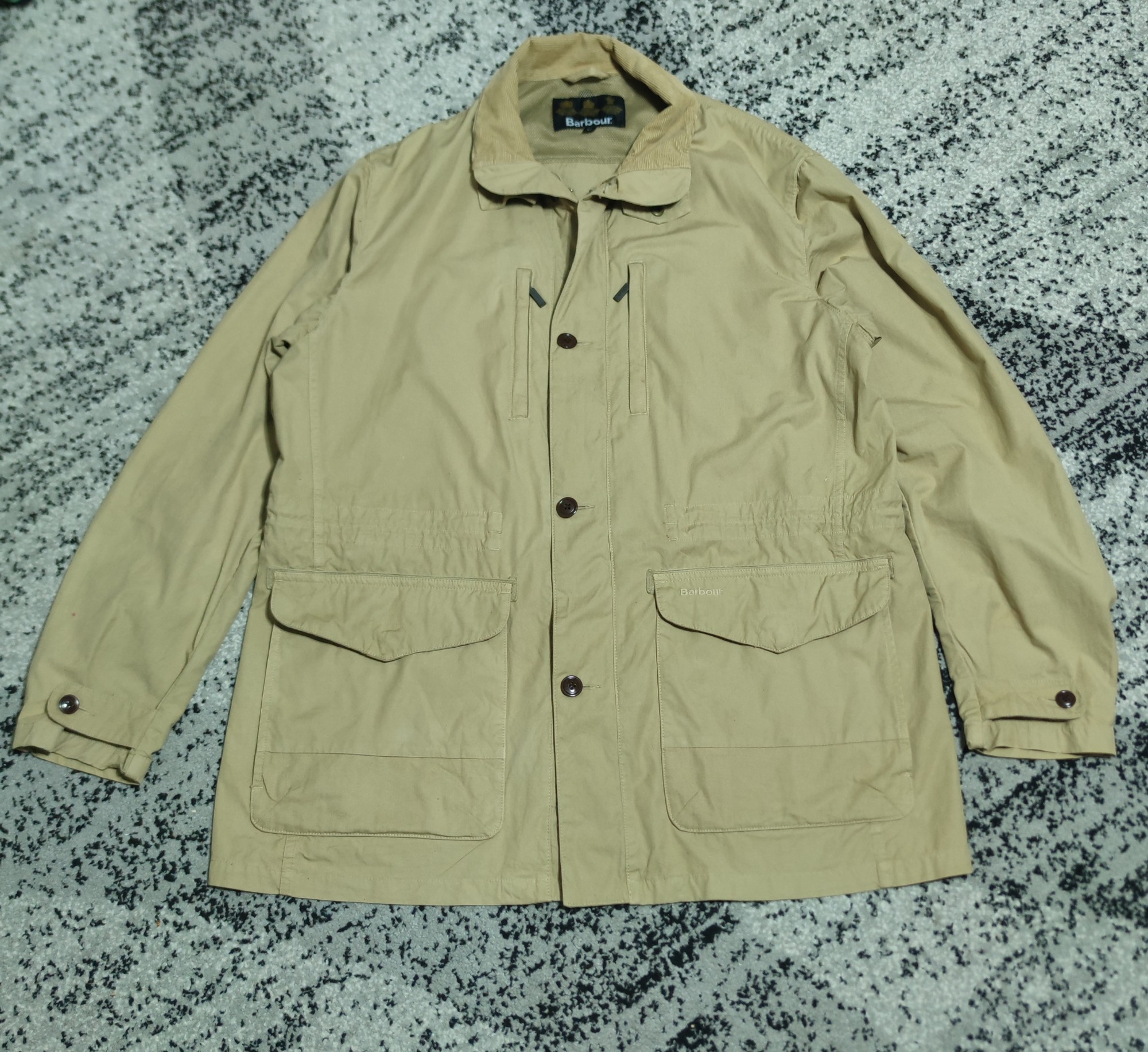 Чоловіча легка повсякденна куртка Barbour Military Brown Croston розміру 2XL – це стильний та універсальний верхній одяг для чоловіків. Виготовлена з міцного поліаміду з парусиновою тканиною та вовняним утеплювачем, ця куртка ідеально підходить для повсюдних оглядів. Бежевий колір, застібка на блискавку, ґудзики та гачки, а також стильні парки надають їй класичного вигляду. Легка конструкція дозволяє легко її носити, що робить її практичним та модним вибором для щоденного носіння.