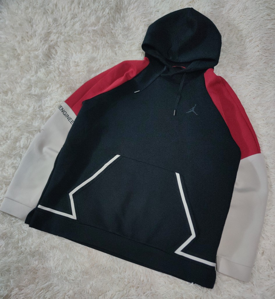 Upgrade your everyday wardrobe with the Nike Air Jordan Flight Tech Diamond Fleece Hoodie, a stylish blend of comfort and tradition. This oversized men's hoodie embodies classic athletic style with a bold design featuring color accents and the iconic Nike Jordan logo. The cozy fleece material will keep you warm during the cold season, while the hood and pockets add practicality to this fashionable pullover. Created for fans of Michael Jordan and Nike, this hoodie is perfect for a variety of activities, from basketball to walking. The drawstring closure and long sleeves provide a snug fit, perfect for both gym workouts and everyday wear. The hoodie is machine washable for easy care and maintenance. Whether you're walking around town or relaxing at home, this garment is a versatile addition to any outfit.