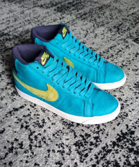 Insole length 24cm without box don't forget to subscribe to my page so you don't miss the latest. Very comfortable Nike SB shoe with impact protection, raised ankle and BMX-friendly outsole Shoes - Nike SB Blazer Premium SE A very comfortable Nike SB shoe designed not only for skateboarding, but also for recreation, longboarding, BMX, etc. The shoe offers a great way to protect the heel from impacts in the form of a multi-layer sole. The higher ankle is not only a design feature, but also has a practical purpose, namely to fix the foot or ankle. Combining new technologies and high-quality materials, we get a very comfortable and convenient shoe. The rather sturdy sole with a classic pattern holds up well both on the board and on the pedals. If you're looking for a quality shoe for skateboarding, longboarding, cycling, or just for relaxing, the Nike SB Blazeer is a great choice. - impact protection in the heel area - raised ankle - refined outsole - unique design Material: leather, nubuck, nylon, rubber the back inside of the shoe is restored and glued with a special material. See the last photo