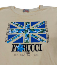 RARE! VTG 80s FIORUCCI ITALY "GREEN BRITAIN WORLD BOUTIQUE" HAVE ANOTHER PRICE IN YOUR MIND? WE WELCOME OFFERS. DO OFFER YOUR PRICE. ITEM DESCRIPTION : • TAG LABEL : FIORUCCI • OVERALL; THE ITEM IS IN GREAT VINTAGE CONDITION (8.5/10) ;- PLEASE REFER PHOTO • NO MAJOR STAINS, RIPS OR HOLES FOUND.- PLEASE REFER PHOTO. • SIZE : M (By measurement) • MATERIAL : 100% COTTON ATTENTION : Please pay close attention to the measurements provided. Do not rely on tag size as pre-worn/owned items may have been altered, stretched or shrunk & vintage sizes do not correlate with modern sizing. The best way to ensure a correct fit is to compare your measurements with the measurements of item that fits you well. Please enlarge the photos for clearer image. ALL MEASUREMENTS ARE TAKEN WITH THE GARMENT LYING FLAT ON THE GROUND WORLDWIDE SHIPPING COST : 1) DHL EXPRESS : $50 (ETA 3-5 DAYS TO ARRIVE) (PLEASE REQUEST IF THE ITEM NEEDED TO BE EXPEDITED - ADDITIONAL COST REQUIRED;, UNLESS, WE USED REGISTERED MAIL SERVICE ) 2) REGISTERED MAIL INTERNATIONAL SERVICE : $25 (ETA 14-21 DAYS TO ARRIVE) BOTH TRACKING NUMBER INCLUDED. PAYMENT BY PAYPAL ONLY. NOTE : PLEASE DROP OFF YOUR PHONE NUMBER ON THE NOTE WHEN MAKE A PURCHASE, WE WOULD LIKE TO PUT ON POST SERVICES. PLEASE LEAVE MESSAGE IF THERE'S ANY INQUIRY. I WILL GLADLY TO REPLY YOU. HAPPY SHOPPING. DISCLAIMER : This is NOT a brand new item UNLESS stated so. This is a PRE-OWNED item and VINTAGE ; which some of the garment should show some signs of wear . Even so, every item showcased at Thrift.inc is in IMMACULATE quality, and those signs of wear will NOT affect the wearer in any way. NO RETURN; hence, please read the description carefully before purchasing.