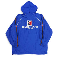 RARE! VTG KARL KANI HIP HOP STYLE SIDE TAPE BIG LOGO HAVE ANOTHER PRICE IN YOUR MIND? WE WELCOME OFFERS. DO OFFER YOUR PRICE. ITEM DESCRIPTION : • TAG LABEL : KARL KANI • OVERALL; THE ITEM IS STILL IN GOOD VINTAGE CONDITION (7/10) ; HOWEVER, THERE'S A SMALL RIP ON THE BACK OF THE LEFT SLEEVE (SHELL) WHICH COULD BE PATCHED. - PLEASE REFER PHOTO • NO MAJOR STAINS, RIPS OR HOLES FOUND.- PLEASE REFER PHOTO. • SIZE : L (On tag) ATTENTION : Please pay close attention to the measurements provided. Do not rely on tag size as pre-worn/owned items may have been altered, stretched or shrunk & vintage sizes do not correlate with modern sizing. The best way to ensure a correct fit is to compare your measurements with the measurements of item that fits you well. Please enlarge the photos for clearer image. ALL MEASUREMENTS ARE TAKEN WITH THE GARMENT LYING FLAT ON THE GROUND WORLDWIDE SHIPPING COST : 1) DHL EXPRESS : $50 (ETA 3-5 DAYS TO ARRIVE) (PLEASE REQUEST IF THE ITEM NEEDED TO BE EXPEDITED - ADDITIONAL COST REQUIRED;, UNLESS, WE USED REGISTERED MAIL SERVICE ) 2) REGISTERED MAIL INTERNATIONAL SERVICE : $30 (ETA 14-21 DAYS TO ARRIVE) BOTH TRACKING NUMBER INCLUDED. PAYMENT BY PAYPAL ONLY. NOTE : PLEASE DROP OFF YOUR PHONE NUMBER ON THE NOTE WHEN MAKE A PURCHASE, WE WOULD LIKE TO PUT ON POST SERVICES. PLEASE LEAVE MESSAGE IF THERE'S ANY INQUIRY. I WILL GLADLY TO REPLY YOU. HAPPY SHOPPING. DISCLAIMER : This is NOT a brand new item UNLESS stated so. This is a PRE-OWNED item and VINTAGE ; which some of the garment should show some signs of wear . Even so, every item showcased at Thrift.inc is in IMMACULATE quality, and those signs of wear will NOT affect the wearer in any way. NO RETURN; hence, please read the description carefully before purchasing.