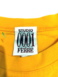RARE! STUDIO 0001 FERRE EMBROIDERED LOGO TEE HAVE ANOTHER PRICE IN YOUR MIND? WE WELCOME OFFERS. DO OFFER YOUR PRICE. ITEM DESCRIPTION : • TAG LABEL : STUDIO 0001 FERRE • OVERALL; THE ITEM IS STILL IN GOOD CONDITION (7/10) ; HOWEVER, THERE'S A MINOR WASHABLE STAIN ON THE CHEST AREA. - PLEASE REFER PHOTO • NO MAJOR STAINS, RIPS OR HOLES FOUND.- PLEASE REFER PHOTO. • SIZE : XL (By measurement) • MATERIAL: 100% COTTON MEASUREMENT: • ARMPIT TO ARMPIT : 22.5 INCH (CHEST 45) • LENGTH FROM SHOULDER TO HEM : 29 INCH ATTENTION : Please pay close attention to the measurements provided. Do not rely on tag size as pre-worn/owned items may have been altered, stretched or shrunk & vintage sizes do not correlate with modern sizing. The best way to ensure a correct fit is to compare your measurements with the measurements of item that fits you well. Please enlarge the photos for clearer image. ALL MEASUREMENTS ARE TAKEN WITH THE GARMENT LYING FLAT ON THE GROUND WORLDWIDE SHIPPING COST : 1) DHL EXPRESS : $40 (ETA 3-5 DAYS TO ARRIVE) (PLEASE REQUEST IF THE ITEM NEEDED TO BE EXPEDITED - ADDITIONAL COST REQUIRED;, UNLESS, WE USED REGISTERED MAIL SERVICE ) 2) REGISTERED MAIL INTERNATIONAL SERVICE : $25 (ETA 14-21 DAYS TO ARRIVE) BOTH TRACKING NUMBER INCLUDED. PAYMENT BY PAYPAL ONLY. NOTE : PLEASE DROP OFF YOUR PHONE NUMBER ON THE NOTE WHEN MAKE A PURCHASE, WE WOULD LIKE TO PUT ON POST SERVICES. PLEASE LEAVE MESSAGE IF THERE'S ANY INQUIRY. I WILL GLADLY TO REPLY YOU. HAPPY SHOPPING. DISCLAIMER : This is NOT a brand new item UNLESS stated so. This is a PRE-OWNED item and VINTAGE ; which some of the garment should show some signs of wear . Even so, every item showcased at Thrift.inc is in IMMACULATE quality, and those signs of wear will NOT affect the wearer in any way. NO RETURN; hence, please read the description carefully before purchasing.