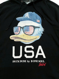 RARE! B ONE SOUL JAPAN DUCK DUDE "USA" HOODIE S/SLEEVE HAVE ANOTHER PRICE IN YOUR MIND? WE WELCOME OFFERS. DO OFFER YOUR PRICE. ITEM DESCRIPTION : • TAG LABEL : B ONE SOUL • OVERALL; THE ITEM IS IN GREAT CONDITION (9/10) ; - PLEASE REFER PHOTO • NO MAJOR STAINS, RIPS OR HOLES FOUND.- PLEASE REFER PHOTO. • SIZE : S (By measurement) • MATERIAL: 100% COTTON ATTENTION : Please pay close attention to the measurements provided. Do not rely on tag size as pre-worn/owned items may have been altered, stretched or shrunk & vintage sizes do not correlate with modern sizing. The best way to ensure a correct fit is to compare your measurements with the measurements of item that fits you well. Please enlarge the photos for clearer image. ALL MEASUREMENTS ARE TAKEN WITH THE GARMENT LYING FLAT ON THE GROUND WORLDWIDE SHIPPING COST : 1) DHL EXPRESS : $40 (ETA 3-5 DAYS TO ARRIVE) (PLEASE REQUEST IF THE ITEM NEEDED TO BE EXPEDITED - ADDITIONAL COST REQUIRED;, UNLESS, WE USED REGISTERED MAIL SERVICE ) 2) REGISTERED MAIL INTERNATIONAL SERVICE : $20 (ETA 14-21 DAYS TO ARRIVE) BOTH TRACKING NUMBER INCLUDED. PAYMENT BY PAYPAL ONLY. NOTE : PLEASE DROP OFF YOUR PHONE NUMBER ON THE NOTE WHEN MAKE A PURCHASE, WE WOULD LIKE TO PUT ON POST SERVICES. PLEASE LEAVE MESSAGE IF THERE'S ANY INQUIRY. I WILL GLADLY TO REPLY YOU. HAPPY SHOPPING. DISCLAIMER : This is NOT a brand new item UNLESS stated so. This is a PRE-OWNED item and VINTAGE ; which some of the garment should show some signs of wear . Even so, every item showcased at Thrift.inc is in IMMACULATE quality, and those signs of wear will NOT affect the wearer in any way. NO RETURN; hence, please read the description carefully before purchasing.