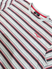 RARE! KANSAI YAMAMOTO HOMME STRIPED TEE HAVE ANOTHER PRICE IN YOUR MIND? WE WELCOME OFFERS. DO OFFER YOUR PRICE. ITEM DESCRIPTION : • TAG LABEL : KANSAI YAMAMOTO HOMME • OVERALL; THE ITEM IS STILL IN GREAT CONDITION (9/10) ;- PLEASE REFER PHOTO • NO MAJOR STAINS, RIPS OR HOLES FOUND.- PLEASE REFER PHOTO. • SIZE : XXL (By measurement) • MATERIAL: 60% POLYESTER, 40% COTTON MEASUREMENT: • ARMPIT TO ARMPIT : 25 INCH (CHEST 50) • LENGTH FROM SHOULDER TO HEM : 28 INCH ATTENTION : Please pay close attention to the measurements provided. Do not rely on tag size as pre-worn/owned items may have been altered, stretched or shrunk & vintage sizes do not correlate with modern sizing. The best way to ensure a correct fit is to compare your measurements with the measurements of item that fits you well. Please enlarge the photos for clearer image. ALL MEASUREMENTS ARE TAKEN WITH THE GARMENT LYING FLAT ON THE GROUND WORLDWIDE SHIPPING COST : 1) DHL EXPRESS : $40 (ETA 3-5 DAYS TO ARRIVE) (PLEASE REQUEST IF THE ITEM NEEDED TO BE EXPEDITED - ADDITIONAL COST REQUIRED;, UNLESS, WE USED REGISTERED MAIL SERVICE ) 2) REGISTERED MAIL INTERNATIONAL SERVICE : $25 (ETA 14-21 DAYS TO ARRIVE) BOTH TRACKING NUMBER INCLUDED. PAYMENT BY PAYPAL ONLY. NOTE : PLEASE DROP OFF YOUR PHONE NUMBER ON THE NOTE WHEN MAKE A PURCHASE, WE WOULD LIKE TO PUT ON POST SERVICES. PLEASE LEAVE MESSAGE IF THERE'S ANY INQUIRY. I WILL GLADLY TO REPLY YOU. HAPPY SHOPPING. DISCLAIMER : This is NOT a brand new item UNLESS stated so. This is a PRE-OWNED item and VINTAGE ; which some of the garment should show some signs of wear . Even so, every item showcased at Thrift.inc is in IMMACULATE quality, and those signs of wear will NOT affect the wearer in any way. NO RETURN; hence, please read the description carefully before purchasing.
