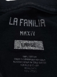 LA FAMILIA HIP HOP STAR RAPPER "THE GAME" HAVE ANOTHER PRICE IN YOUR MIND? WE WELCOME OFFERS. DO OFFER YOUR PRICE. ITEM DESCRIPTION : • TAG LABEL : LA FAMILIA • OVERALL; THE ITEM IS IN GREAT CONDITION (8.5/10) ;- PLEASE REFER PHOTO • NO MAJOR STAINS, RIPS OR HOLES FOUND.- PLEASE REFER PHOTO. • SIZE : L (By measurement) • MATERIAL : 100% COTTON ATTENTION : Please pay close attention to the measurements provided. Do not rely on tag size as pre-worn/owned items may have been altered, stretched or shrunk & vintage sizes do not correlate with modern sizing. The best way to ensure a correct fit is to compare your measurements with the measurements of item that fits you well. Please enlarge the photos for clearer image. ALL MEASUREMENTS ARE TAKEN WITH THE GARMENT LYING FLAT ON THE GROUND WORLDWIDE SHIPPING COST : 1) DHL EXPRESS : $50 (ETA 3-5 DAYS TO ARRIVE) (PLEASE REQUEST IF THE ITEM NEEDED TO BE EXPEDITED - ADDITIONAL COST REQUIRED;, UNLESS, WE USED REGISTERED MAIL SERVICE ) 2) REGISTERED MAIL INTERNATIONAL SERVICE : $25 (ETA 14-21 DAYS TO ARRIVE) BOTH TRACKING NUMBER INCLUDED. PAYMENT BY PAYPAL ONLY. NOTE : PLEASE DROP OFF YOUR PHONE NUMBER ON THE NOTE WHEN MAKE A PURCHASE, WE WOULD LIKE TO PUT ON POST SERVICES. PLEASE LEAVE MESSAGE IF THERE'S ANY INQUIRY. I WILL GLADLY TO REPLY YOU. HAPPY SHOPPING. DISCLAIMER : This is NOT a brand new item UNLESS stated so. This is a PRE-OWNED item and VINTAGE ; which some of the garment should show some signs of wear . Even so, every item showcased at Thrift.inc is in IMMACULATE quality, and those signs of wear will NOT affect the wearer in any way. NO RETURN; hence, please read the description carefully before purchasing.