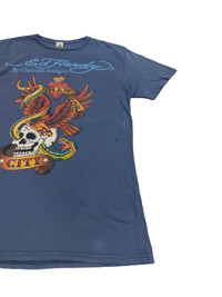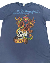 RARE! VTG DISTRESSED CHRISTIAN AUDIGIER ED HARDY ARTWORK HAVE ANOTHER PRICE IN YOUR MIND? WE WELCOME OFFERS. DO OFFER YOUR PRICE. ITEM DESCRIPTION : • TAG LABEL : CHRISTIAN AUDIGIER ED HARDY • MADE IN : U.S.A • OVERALL; THE ITEM IS STILL IN FAIR VINTAGE CONDITION (6/10) ; THE GARMENT DO SHOW SIGNS OF WEAR AS THERE ARE SEVERAL HOLES ON IT. IT HAS DISTRESSED LOOK AND HAS A NICE CHARACTER. BUT IT'S STILL A GREAT PIECE. - PLEASE REFER PHOTO • NO MAJOR STAINS, RIPS OR HOLES FOUND.- PLEASE REFER PHOTO. • SIZE : L (By measurement) • MATERIAL : 100% COTTON ATTENTION : Please pay close attention to the measurements provided. Do not rely on tag size as pre-worn/owned items may have been altered, stretched or shrunk & vintage sizes do not correlate with modern sizing. The best way to ensure a correct fit is to compare your measurements with the measurements of item that fits you well. Please enlarge the photos for clearer image. ALL MEASUREMENTS ARE TAKEN WITH THE GARMENT LYING FLAT ON THE GROUND WORLDWIDE SHIPPING COST : 1) DHL EXPRESS : $40 (ETA 3-5 DAYS TO ARRIVE) (PLEASE REQUEST IF THE ITEM NEEDED TO BE EXPEDITED - ADDITIONAL COST REQUIRED;, UNLESS, WE USED REGISTERED MAIL SERVICE ) 2) REGISTERED MAIL INTERNATIONAL SERVICE : $25 (ETA 14-21 DAYS TO ARRIVE) BOTH TRACKING NUMBER INCLUDED. PAYMENT BY PAYPAL ONLY. NOTE : PLEASE DROP OFF YOUR PHONE NUMBER ON THE NOTE WHEN MAKE A PURCHASE, WE WOULD LIKE TO PUT ON POST SERVICES. PLEASE LEAVE MESSAGE IF THERE'S ANY INQUIRY. I WILL GLADLY TO REPLY YOU. HAPPY SHOPPING. DISCLAIMER : This is NOT a brand new item UNLESS stated so. This is a PRE-OWNED item and VINTAGE ; which some of the garment should show some signs of wear . Even so, every item showcased at Thrift.inc is in IMMACULATE quality, and those signs of wear will NOT affect the wearer in any way. NO RETURN; hence, please read the description carefully before purchasing.