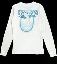 RARE! VTG HYSTERIC GLAMOUR "NAKED GIRL SURFING" HAVE ANOTHER PRICE IN YOUR MIND? WE WELCOME OFFERS. DO OFFER YOUR PRICE. ITEM DESCRIPTION : • TAG LABEL : HYSTERIC GLAMOUR • MADE IN : JAPAN • OVERALL; THE ITEM IS STILL IN FAIR USED CONDITION (6/10) ; THE GARMENT DO SHOW SIGNS OF WEAR; THERE ARE FEW SPOTS ON IT AND IT'S FADED WHICH IS NORMAL DUE TO ITS AGE AND PREVIOUS WEAR. HOWEVER, PLENTY OF WEAR LEFT ON THE GARMENT. - PLEASE REFER PHOTO • NO MAJOR STAINS, RIPS OR HOLES FOUND.- PLEASE REFER PHOTO. • SIZE : XS (By measurement) • MATERIAL: 100% COTTON MEASUREMENT: • ARMPIT TO ARMPIT : 16 INCH (CHEST 32) • LENGTH FROM SHOULDER TO HEM : 25 INCH • LENGTH FROM SHOULDER TO CUFF (SLEEVE) : 24.5 INCH ATTENTION : Please pay close attention to the measurements provided. Do not rely on tag size as pre-worn/owned items may have been altered, stretched or shrunk & vintage sizes do not correlate with modern sizing. The best way to ensure a correct fit is to compare your measurements with the meas