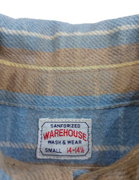 RARE! WAREHOUSE CO JAPANESE BRAND PLAID PASTEL FLANNEL HAVE ANOTHER PRICE IN YOUR MIND? WE WELCOME OFFERS. DO OFFER YOUR PRICE. ITEM DESCRIPTION : • TAG LABEL : WAREHOUSE • MADE IN ; JAPAN • OVERALL; THE ITEM IS STILL IN GOOD CONDITION (8/10) ;- PLEASE REFER PHOTO • NO MAJOR STAINS, RIPS OR HOLES FOUND.- PLEASE REFER PHOTO. • SIZE : S (By measurement) • MATERIAL : 100% COTTON ATTENTION : Please pay close attention to the measurements provided. Do not rely on tag size as pre-worn/owned items may have been altered, stretched or shrunk & vintage sizes do not correlate with modern sizing. The best way to ensure a correct fit is to compare your measurements with the measurements of item that fits you well. Please enlarge the photos for clearer image. ALL MEASUREMENTS ARE TAKEN WITH THE GARMENT LYING FLAT ON THE GROUND WORLDWIDE SHIPPING COST : 1) DHL EXPRESS : $40 (ETA 3-5 DAYS TO ARRIVE) (PLEASE REQUEST IF THE ITEM NEEDED TO BE EXPEDITED - ADDITIONAL COST REQUIRED;, UNLESS, WE USED REGISTERED MAIL SERVICE ) 2) REGISTERED MAIL INTERNATIONAL SERVICE : $25 (ETA 14-21 DAYS TO ARRIVE) BOTH TRACKING NUMBER INCLUDED. PAYMENT BY PAYPAL ONLY. NOTE : PLEASE DROP OFF YOUR PHONE NUMBER ON THE NOTE WHEN MAKE A PURCHASE, WE WOULD LIKE TO PUT ON POST SERVICES. PLEASE LEAVE MESSAGE IF THERE'S ANY INQUIRY. I WILL GLADLY TO REPLY YOU. HAPPY SHOPPING. DISCLAIMER : This is NOT a brand new item UNLESS stated so. This is a PRE-OWNED item and VINTAGE ; which some of the garment should show some signs of wear . Even so, every item showcased at Thrift.inc is in IMMACULATE quality, and those signs of wear will NOT affect the wearer in any way. NO RETURN; hence, please read the description carefully before purchasing.