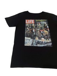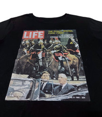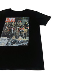 RARE! LIFE MAGAZINE COLLECTION "KENNEDY IN PARIS" 1961 ISSUE HAVE ANOTHER PRICE IN YOUR MIND? WE WELCOME OFFERS. DO OFFER YOUR PRICE. ITEM DESCRIPTION : • TAG LABEL : LIFE x WOMB • OVERALL; THE ITEM IS IN GREAT CONDITION (8.5/10) ;- PLEASE REFER PHOTO • NO MAJOR STAINS, RIPS OR HOLES FOUND.- PLEASE REFER PHOTO. • SIZE : S (By measurement) • MATERIAL : 100% COTTON ATTENTION : Please pay close attention to the measurements provided. Do not rely on tag size as pre-worn/owned items may have been altered, stretched or shrunk & vintage sizes do not correlate with modern sizing. The best way to ensure a correct fit is to compare your measurements with the measurements of item that fits you well. Please enlarge the photos for clearer image. ALL MEASUREMENTS ARE TAKEN WITH THE GARMENT LYING FLAT ON THE GROUND WORLDWIDE SHIPPING COST : 1) DHL EXPRESS : $40 (ETA 3-5 DAYS TO ARRIVE) (PLEASE REQUEST IF THE ITEM NEEDED TO BE EXPEDITED - ADDITIONAL COST REQUIRED;, UNLESS, WE USED REGISTERED MAIL SERVICE ) 2) REGISTERED MAIL INTERNATIONAL SERVICE : $20 (ETA 14-21 DAYS TO ARRIVE) BOTH TRACKING NUMBER INCLUDED. PAYMENT BY PAYPAL ONLY. NOTE : PLEASE DROP OFF YOUR PHONE NUMBER ON THE NOTE WHEN MAKE A PURCHASE, WE WOULD LIKE TO PUT ON POST SERVICES. PLEASE LEAVE MESSAGE IF THERE'S ANY INQUIRY. I WILL GLADLY TO REPLY YOU. HAPPY SHOPPING. DISCLAIMER : This is NOT a brand new item UNLESS stated so. This is a PRE-OWNED item and VINTAGE ; which some of the garment should show some signs of wear . Even so, every item showcased at Thrift.inc is in IMMACULATE quality, and those signs of wear will NOT affect the wearer in any way. NO RETURN; hence, please read the description carefully before purchasing.