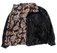 RARE! UNIQUE VTG REVERSIBLE PAISLEY ALLOVER PRINT JACKET HAVE ANOTHER PRICE IN YOUR MIND? WE WELCOME OFFERS. DO OFFER YOUR PRICE. ITEM DESCRIPTION : • TAG LABEL : - • OVERALL; THE ITEM IS STILL IN GOOD VINTAGE CONDITION (7.5/10) ; HOWEVER THERE'S A SMALL HOLE ON THE BOTTOM PART OF THE BLACK SIDE OF THE GARMENT. - PLEASE REFER PHOTO • NO MAJOR STAINS, RIPS OR HOLES FOUND.- PLEASE REFER PHOTO. • SIZE : L (By measurement) • MATERIAL: SHELL : 100% POLYESTER MEASUREMENT: • ARMPIT TO ARMPIT : 27 INCH • LENGTH FROM SHOULDER TO HEM : 24 INCH • LENGTH FROM SHOULDER TO CUFF (SLEEVE) : 19 INCH ATTENTION : Please pay close attention to the measurements provided. Do not rely on tag size as pre-worn/owned items may have been altered, stretched or shrunk & vintage sizes do not correlate with modern sizing. The best way to ensure a correct fit is to compare your measurements with the measurements of item that fits you well. Please enlarge the photos for clearer image. ALL MEASUREMENTS ARE TAKEN WITH THE GARMENT LYING FLAT ON THE GROUND WORLDWIDE SHIPPING COST : 1) DHL EXPRESS : $50 (ETA 3-5 DAYS TO ARRIVE) (PLEASE REQUEST IF THE ITEM NEEDED TO BE EXPEDITED - ADDITIONAL COST REQUIRED;, UNLESS, WE USED REGISTERED MAIL SERVICE ) 2) REGISTERED MAIL INTERNATIONAL SERVICE : $30 (ETA 14-21 DAYS TO ARRIVE) BOTH TRACKING NUMBER INCLUDED. PAYMENT BY PAYPAL ONLY. NOTE : PLEASE DROP OFF YOUR PHONE NUMBER ON THE NOTE WHEN MAKE A PURCHASE, WE WOULD LIKE TO PUT ON POST SERVICES. PLEASE LEAVE MESSAGE IF THERE'S ANY INQUIRY. I WILL GLADLY TO REPLY YOU. HAPPY SHOPPING. DISCLAIMER : This is NOT a brand new item UNLESS stated so. This is a PRE-OWNED item and VINTAGE ; which some of the garment should show some signs of wear . Even so, every item showcased at Thrift.inc is in IMMACULATE quality, and those signs of wear will NOT affect the wearer in any way. NO RETURN; hence, please read the description carefully before purchasing.
