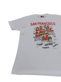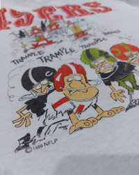 RARE! VTG 1989 SAN FRANCISCO 49ERS NFL SUPERBOWL CHAMPION HAVE ANOTHER PRICE IN YOUR MIND? WE WELCOME OFFERS. DO OFFER YOUR PRICE. ITEM DESCRIPTION : • TAG LABEL : SCREEN STARS • MADE IN : U.S.A • OVERALL; THE ITEM IS STILL IN GOOD VINTAGE CONDITION (8/10) ;- PLEASE REFER PHOTO • NO MAJOR STAINS, RIPS OR HOLES FOUND.- PLEASE REFER PHOTO. • SIZE : L (By measurement) • MATERIAL : 50% COTTON, 50% POLYESTER ATTENTION : Please pay close attention to the measurements provided. Do not rely on tag size as pre-worn/owned items may have been altered, stretched or shrunk & vintage sizes do not correlate with modern sizing. The best way to ensure a correct fit is to compare your measurements with the measurements of item that fits you well. Please enlarge the photos for clearer image. ALL MEASUREMENTS ARE TAKEN WITH THE GARMENT LYING FLAT ON THE GROUND WORLDWIDE SHIPPING COST : 1) DHL EXPRESS : $40 (ETA 3-5 DAYS TO ARRIVE) (PLEASE REQUEST IF THE ITEM NEEDED TO BE EXPEDITED - ADDITIONAL COST REQUIRED;, UNLESS, WE USED REGISTERED MAIL SERVICE ) 2) REGISTERED MAIL INTERNATIONAL SERVICE : $25 (ETA 14-21 DAYS TO ARRIVE) BOTH TRACKING NUMBER INCLUDED. PAYMENT BY PAYPAL ONLY. NOTE : PLEASE DROP OFF YOUR PHONE NUMBER ON THE NOTE WHEN MAKE A PURCHASE, WE WOULD LIKE TO PUT ON POST SERVICES. PLEASE LEAVE MESSAGE IF THERE'S ANY INQUIRY. I WILL GLADLY TO REPLY YOU. HAPPY SHOPPING. DISCLAIMER : This is NOT a brand new item UNLESS stated so. This is a PRE-OWNED item and VINTAGE ; which some of the garment should show some signs of wear . Even so, every item showcased at Thrift.inc is in IMMACULATE quality, and those signs of wear will NOT affect the wearer in any way. NO RETURN; hence, please read the description carefully before purchasing.