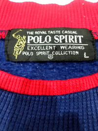 RARE! VTG POLO SPIRIT BIG LOGO SPELL OUT SWEATSHIRT HAVE ANOTHER PRICE IN YOUR MIND? WE WELCOME OFFERS. DO OFFER YOUR PRICE. ITEM DESCRIPTION : • TAG LABEL : POLO SPIRIT SPORTS CLUB • MADE IN : CHINA • OVERALL; THE ITEM IS STILL IN GOOD VINTAGE CONDITION (8/10); THE COLOR IS STILL GREAT, BUT, THE RINGER HAS LOOSEN - PLEASE REFER PHOTO • NO MAJOR STAINS, RIPS OR HOLES FOUND.- PLEASE REFER PHOTO. • SIZE : L (By measurement) • MATERIAL: 100% COTTON MEASUREMENT: • ARMPIT TO ARMPIT : 24 INCH • LENGTH FROM SHOULDER TO HEM : 27 INCH • LENGTH FROM SHOULDER TO CUFF (SLEEVE) : 23 INCH ATTENTION : Please pay close attention to the measurements provided. Do not rely on tag size as pre-worn/owned items may have been altered, stretched or shrunk & vintage sizes do not correlate with modern sizing. The best way to ensure a correct fit is to compare your measurements with the measurements of item that fits you well. Please enlarge the photos for clearer image. ALL MEASUREMENTS ARE TAKEN WITH THE GARMENT LYING FLAT ON THE GROUND WORLDWIDE SHIPPING COST : 1) DHL EXPRESS : $50 (ETA 3-5 DAYS TO ARRIVE) (PLEASE REQUEST IF THE ITEM NEEDED TO BE EXPEDITED - ADDITIONAL COST REQUIRED;, UNLESS, WE USED REGISTERED MAIL SERVICE ) 2) REGISTERED MAIL INTERNATIONAL SERVICE : $35 (ETA 14-21 DAYS TO ARRIVE) BOTH TRACKING NUMBER INCLUDED. PAYMENT BY PAYPAL ONLY. NOTE : PLEASE DROP OFF YOUR PHONE NUMBER ON THE NOTE WHEN MAKE A PURCHASE, WE WOULD LIKE TO PUT ON POST SERVICES. PLEASE LEAVE MESSAGE IF THERE'S ANY INQUIRY. I WILL GLADLY TO REPLY YOU. HAPPY SHOPPING. DISCLAIMER : This is NOT a brand new item UNLESS stated so. This is a PRE-OWNED item and VINTAGE ; which some of the garment should show some signs of wear . Even so, every item showcased at Thrift.inc is in IMMACULATE quality, and those signs of wear will NOT affect the wearer in any way. NO RETURN; hence, please read the description carefully before purchasing.
