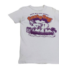 • TAG LABEL : EROSTY POP by ROCKIN JELLY BEAN. • OVERALL; THE ITEM IS STILL IN GOOD VINTAGE CONDITION (7/10) ; THE GARMENT DO SHOW SIGNS OF WEAR WITH A PINHOLE THAT HAS BEEN PATCHED USING A SPECIAL CLOTH AND HARDLY BOTICED WITH NAKED EYES AND A DISTRESSED COLLAR. BUT, IT STILL HAS A LOT OF WEAR LEFT ON IT DESPITE ITS AGE.- PLEASE REFER PHOTO • NO MAJOR STAINS, RIPS OR HOLES FOUND.- PLEASE REFER PHOTO. • SIZE : S (By measurement) • MATERIAL : 100% COTTON