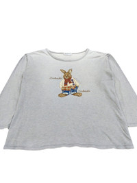 RARE!VTG GB. STUDIO "DABADA DABADO" RABBIT GRAPHIC L/SLEEVE HAVE ANOTHER PRICE IN YOUR MIND? WE WELCOME OFFERS. DO OFFER YOUR PRICE. ITEM DESCRIPTION : • TAG LABEL : GB. STUDIO • MADE IN : JAPAN • OVERALL; THE ITEM IS STILL IN GOOD VINTAGE CONDITION (7/10) ;- PLEASE REFER PHOTO. • NO MAJOR STAINS, RIPS OR HOLES FOUND.- PLEASE REFER PHOTO. • SIZE : M (By measurement) • MATERIAL : 100% COTTON ATTENTION : Please pay close attention to the measurements provided. Do not rely on tag size as pre-worn/owned items may have been altered, stretched or shrunk & vintage sizes do not correlate with modern sizing. The best way to ensure a correct fit is to compare your measurements with the measurements of item that fits you well. Please enlarge the photos for clearer image. ALL MEASUREMENTS ARE TAKEN WITH THE GARMENT LYING FLAT ON THE GROUND WORLDWIDE SHIPPING COST : 1) DHL EXPRESS : $40 (ETA 3-5 DAYS TO ARRIVE) (PLEASE REQUEST IF THE ITEM NEEDED TO BE EXPEDITED - ADDITIONAL COST REQUIRED;, UNLESS, WE USED REGISTERED MAIL SERVICE ) 2) REGISTERED MAIL INTERNATIONAL SERVICE : $20 (ETA 14-21 DAYS TO ARRIVE) BOTH TRACKING NUMBER INCLUDED. PAYMENT BY PAYPAL ONLY. NOTE : PLEASE DROP OFF YOUR PHONE NUMBER ON THE NOTE WHEN MAKE A PURCHASE, WE WOULD LIKE TO PUT ON POST SERVICES. PLEASE LEAVE MESSAGE IF THERE'S ANY INQUIRY. I WILL GLADLY TO REPLY YOU. HAPPY SHOPPING. DISCLAIMER : This is NOT a brand new item UNLESS stated so. This is a PRE-OWNED item and VINTAGE ; which some of the garment should show some signs of wear . Even so, every item showcased at Thrift.inc is in IMMACULATE quality, and those signs of wear will NOT affect the wearer in any way. NO RETURN; hence, please read the description carefully before purchasing.