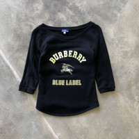 BURBERRY Blue Label Big Logo Boat Neck Sweatshirt TAG : Burberry SIZE : XXS / 38 MEASUREMENT , - Width (Armpit to armpit) : 14.5” - Length (Shoulder the end of garment) : 22.5” CONDITION : Good used ** PLEASE LEAVE ME YOUR PHONE NUMBER ON THE NOTE AFTER MADE A PURCHASE, ITS FOR COURIER NEEDED ** SKU 2329