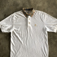 BURBERRYS Vintage Nova Check Polo Shirt TAG : Burberrys SIZE : M MEASUREMENT , - Width (Armpit to armpit) : 20.5” - Length (Shoulder the end of garment) : 30.5”Front 33”Back - Shoulder : 19” - Sleeve Length : 9.5” CONDITION : Perfect vintage used. No holes and stains ** PLEASE LEAVE ME YOUR PHONE NUMBER ON THE NOTE AFTER MADE A PURCHASE, ITS FOR COURIER NEEDED ** SHIPPING, all item will be shipped with tracking number. Item received within 14-21 working days. SKU 2301