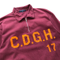COMME des GARCONS Homme Embroidery Logo Half Zip Polo Shirt SIZE : S MEASUREMENT , - Width (Armpit to armpit) : 19” - Length (Shoulder the end of garment) : 26” - Shoulder : 19” - Sleeve Length : 23” Condition : Good vintage used, no holes and stains PLEASE LEAVE ME YOUR PHONE NUMBER ON THE NOTE AFTER MADE A PURCHASE, ITS FOR COURIER NEEDED SKU1579