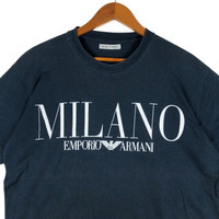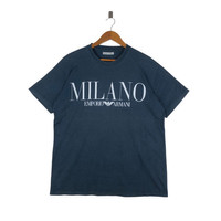 EMPORIO ARMANI Milano Big Logo T-Shirt SIZE : L MEASUREMENT , - Width (Armpit to armpit) : 22” - Length (Shoulder the end of garment) : 28” - Shoulder : 20” - Sleeve Length : 8” Condition : Perfect used, no holes and stains PLEASE LEAVE ME YOUR PHONE NUMBER ON THE NOTE AFTER MADE A PURCHASE, ITS FOR COURIER NEEDED SKU1602