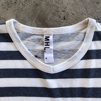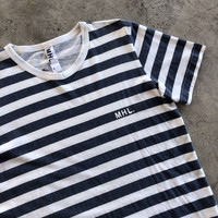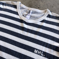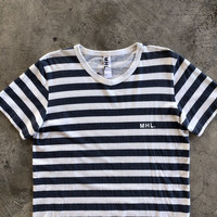 MHL Margaret Howell Stripe T-Shirt TAG : Margaret Howell SIZE : Medium MEASUREMENT , - Width (Armpit to armpit) : 19” - Length (Shoulder the end of garment) : 24.5” - Shoulder : 17” - Sleeve Length : 7.5” CONDITION : Perfect used, no holes and stains ** PLEASE LEAVE ME YOUR PHONE NUMBER ON THE NOTE AFTER MADE A PURCHASE, ITS FOR COURIER NEEDED ** SHIPPING, all item will be shipped with tracking number. Item received within 14-21 working days.