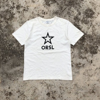 ORSLOW Star Big Logo T-Shirt TAG : Or Slow SIZE : 1 MEASUREMENT , - Width (Armpit to armpit) : 19.5” - Length (Shoulder the end of garment) : 27” - Shoulder : 18.5” - Sleeve Length : 8.5” CONDITION : Perfect used, no holes and stains ** PLEASE LEAVE ME YOUR PHONE NUMBER ON THE NOTE AFTER MADE A PURCHASE, ITS FOR COURIER NEEDED ** SHIPPING, all item will be shipped with tracking number. Item received within 14-21 working days. #orslow