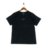 AGNES B. Small Logo T-Shirt TAG : Agnes B. SIZE : M MEASUREMENT , - Width (Armpit to armpit) : 18” - Length (Shoulder the end of garment) : 26.5” - Shoulder : 17.5” - Sleeve Length : 6” CONDITION : Perfect used, no holes and stains. Faded black colour. ** PLEASE LEAVE ME YOUR PHONE NUMBER ON THE NOTE AFTER MADE A PURCHASE, ITS FOR COURIER NEEDED ** SKU 2096