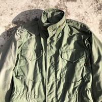 ALPHA INDUSTRIES M-65 Military Field Coat Jacket TAG : Alpha Industires SIZE : S MEASUREMENT , - Width (Armpit to armpit) : 20" - Length (Shoulder the end of garment) : 30” - Shoulder : 18.5” - Sleeve Length : 24” CONDITION : Good vintage used, just right sleeve nicely sunfaded. Got zipper hidden hoodie ** PLEASE LEAVE ME YOUR PHONE NUMBER ON THE NOTE AFTER MADE A PURCHASE, ITS FOR COURIER NEEDED ** SKU 1728