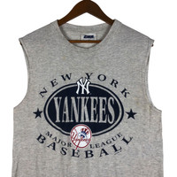 NY YANKEES MLB Vintage Sleeveless Shirt TAG : CSA SIZE : M MEASUREMENT , * Width (Armpit to armpit) : 20.5” * Length (Shoulder the end of garment) : 30” * Shoulder : 17” * Sleeve Length : - CONDITION : Good vintage used, no holes and stains. * *PLEASE LEAVE ME YOUR PHONE NUMBER ON THE NOTE AFTER MADE A PURCHASE, ITS FOR COURIER NEEDED ** SKU 1768